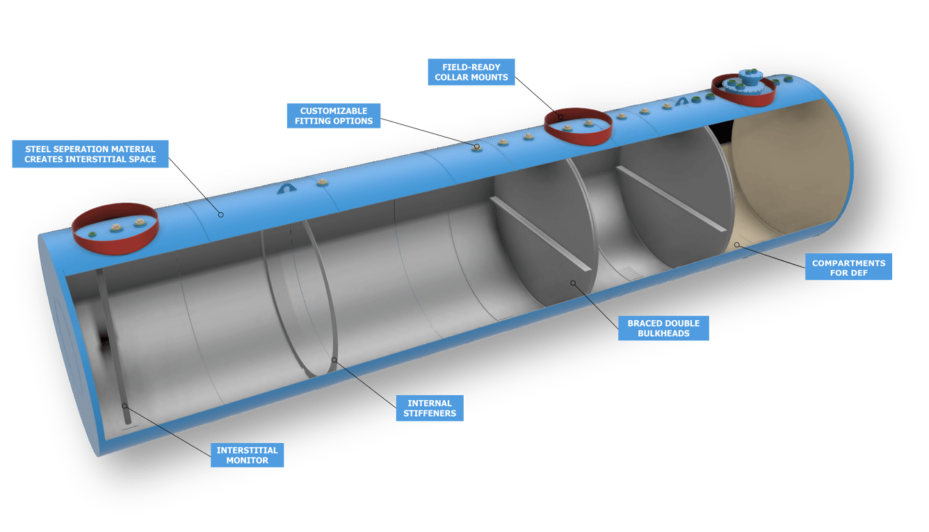 Available in double-wall construction with capacities up to 40,000 gallons, providing scalable solutions for diverse storage needs